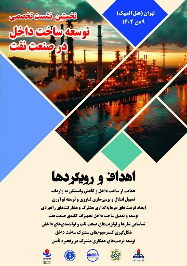 به گزارش خبرنگار پایگاه اطلاع رسانی شرکت ملی نفت ایران، این نشست تخصصی روز ۹ دی‌ماه ۱۴۰۴ در تهران (هتل المپیک) برگزار خواهد شد و با هدف تقویت ساخت داخل و کاهش وابستگی به واردات در صنعت نفت، میزبان فعالان، سازندگان و تصمیم‌سازان این حوزه است.