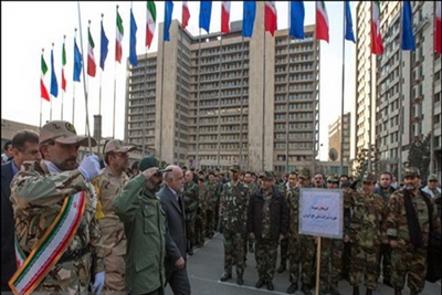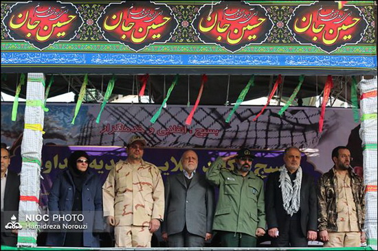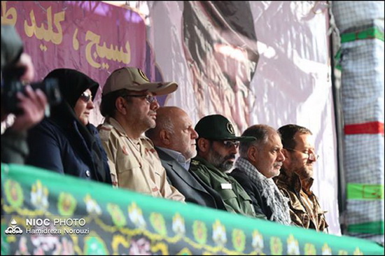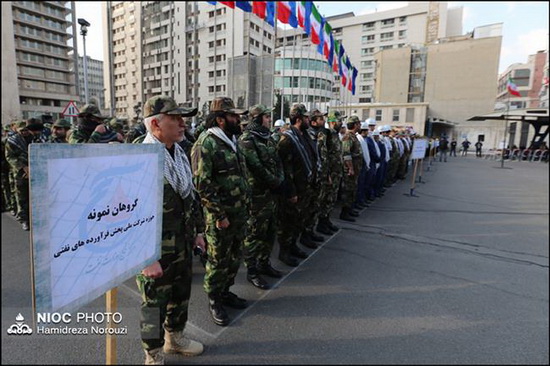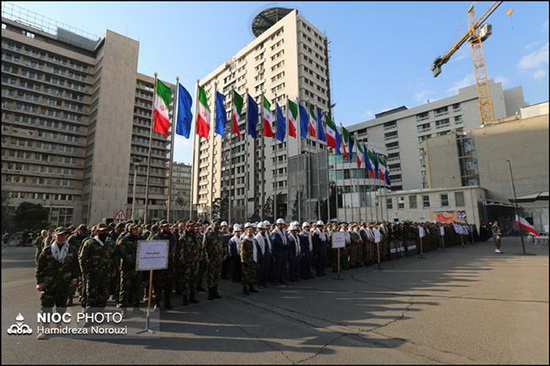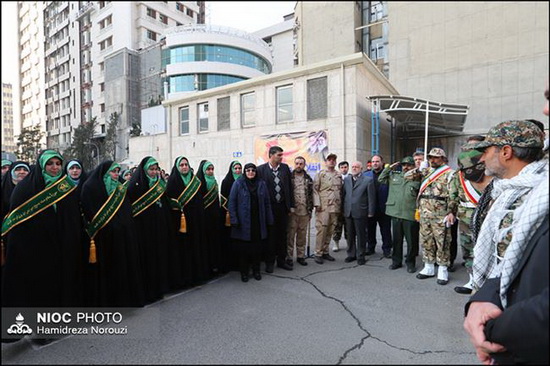 مراسم صبحگاه مشترک بسیجیان وزارت نفت، به مناسبت هفته بسیج با حضور بیژن زنگنه، وزیر نفت و معاونین وی در محوطه وزارت نفت برگزار شد.