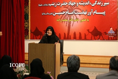 دکتر مرضیه محمدزاده ، استاد دانشگاه در این نشست که با حضور بانوان شاغل در شرکت نفت مناطق مرکزی ایران و به مناسبت گرامیداشت اربعین سالار شهیدان حضرت اباعبدالله الحسین (ع) با همت امور بانوان این شرکت برگزار شد ، رسالت حضرت زینب (س) را پیام آور شعور حسینی و قیام عاشورا دانست و در این رابطه اظهار داشت : حضرت زینب (س) از عصر عاشورا به عنوان پیام آور ، از دین و نهضت مقدس برادرش دفاع کرد . نطق و سخن او چون تیری بر قلب می نشست . او با کمال سرافرازی و موفقیت این مسئولیت سنگین را به خوبی انجام داد.