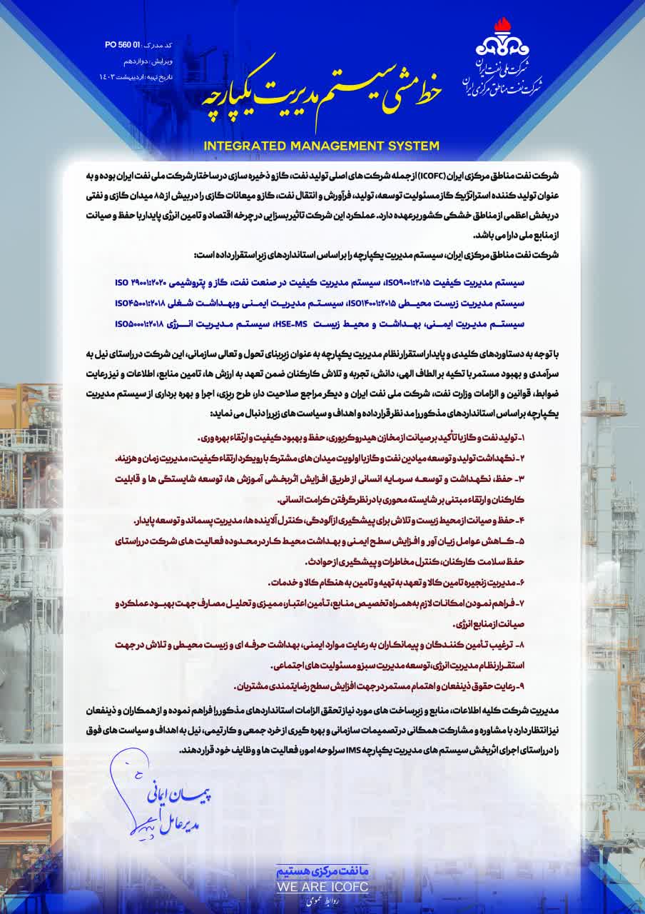 خط مشی شرکت نفت مناطق مرکزی ایران