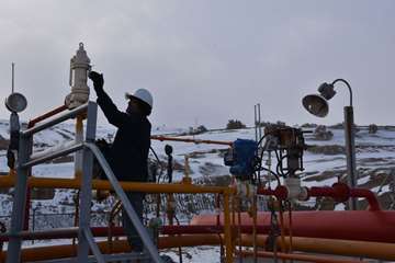 کارکنان شرکت بهره‌برداری نفت و گاز شرق در منطقه عملیاتی خانگیران با وجود سرمای ۱۶ درجه زیر صفر ، تلاش و تکاپوی آنان برای تولید و تامین گاز مصارف خانگی مثال زدنی است.