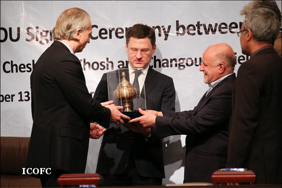 مراسم امضا تفاهمنامه مطالعاتی میدان های نفتی چنگوله و چشمه خوش با حضور بیژن زنگنه؛ وزیر نفت، سلبعلی کریمی؛ مدیرعامل شرکت نفت مناطق مرکزی ایران،الکساندر نوواک؛ وزیر انرژی روسیه و الکساندر دوکوو؛ مدیرعامل شرکت گازپروم نفت به امضا رسید.