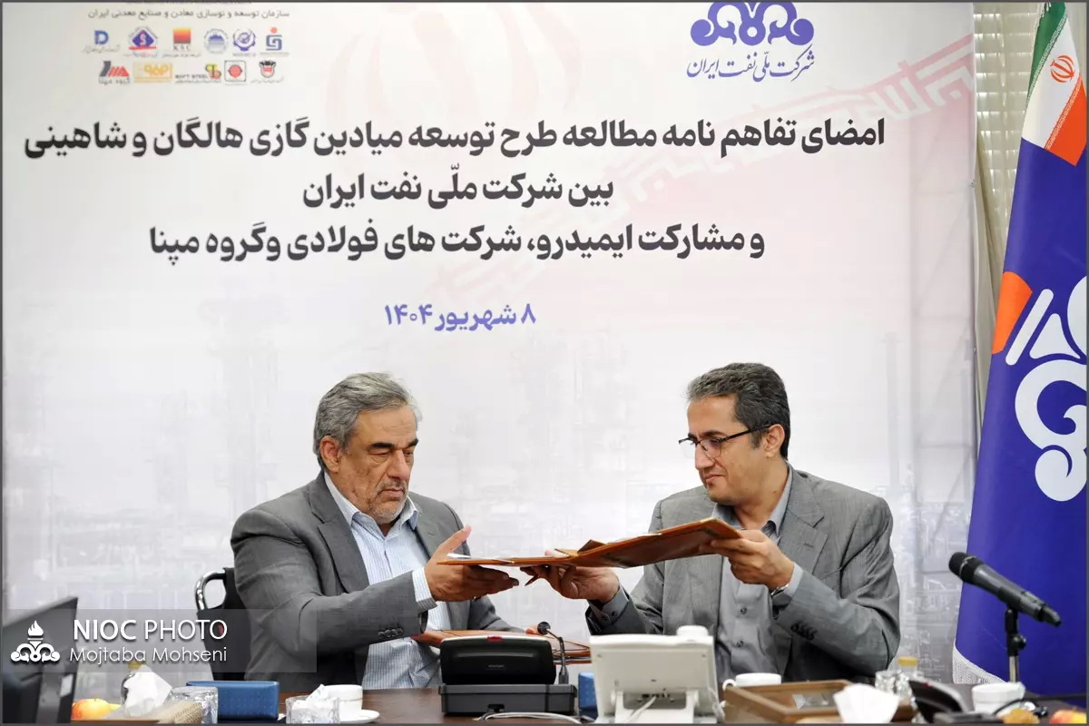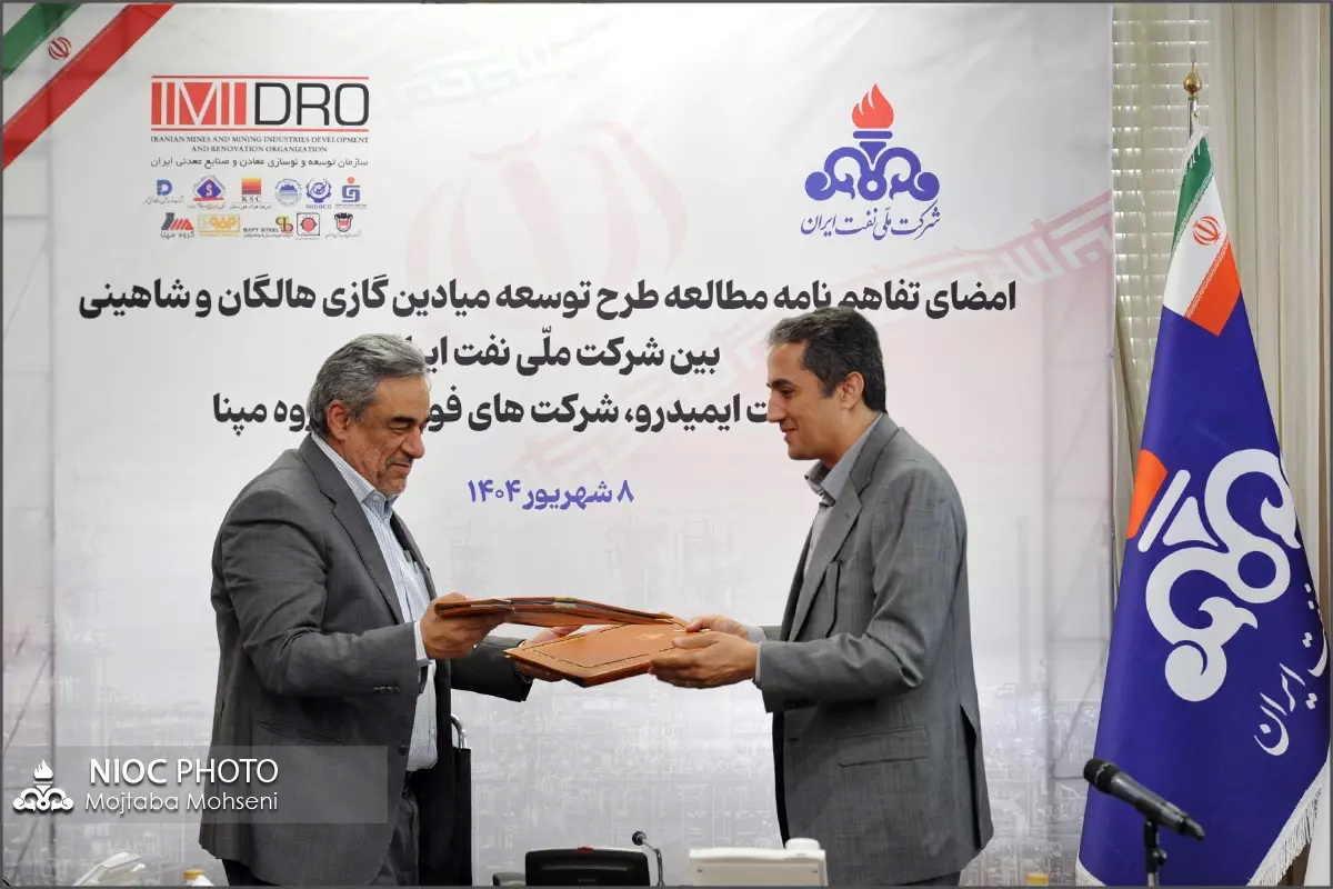 تفاهم‌نامه مطالعه طرح توسعه و بهره‌برداری از میادین گازی هالگان و شاهینی صبح امروز (شنبه ۸ شهریورماه) با حضور حمید بورد، معاون وزیر نفت و مدیرعامل شرکت ملی نفت ایران و محمد آقاجانلو، معاون وزیر صمت و رئیس هیأت عامل ایمیدرو در سالن هیأت‌مدیره شرکت ملی نفت ایران امضا شد.