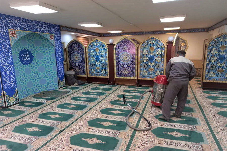 غبار روبی و عطر افشانی نمازخانه های شرکت نفت مناطق مرکزی ایران