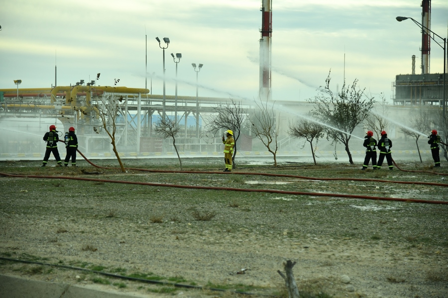 مانور آمادگی مقابله با نشت شدید گاز در منطقه عملیاتی خانگیران برگزار شد + تصویر